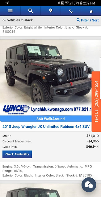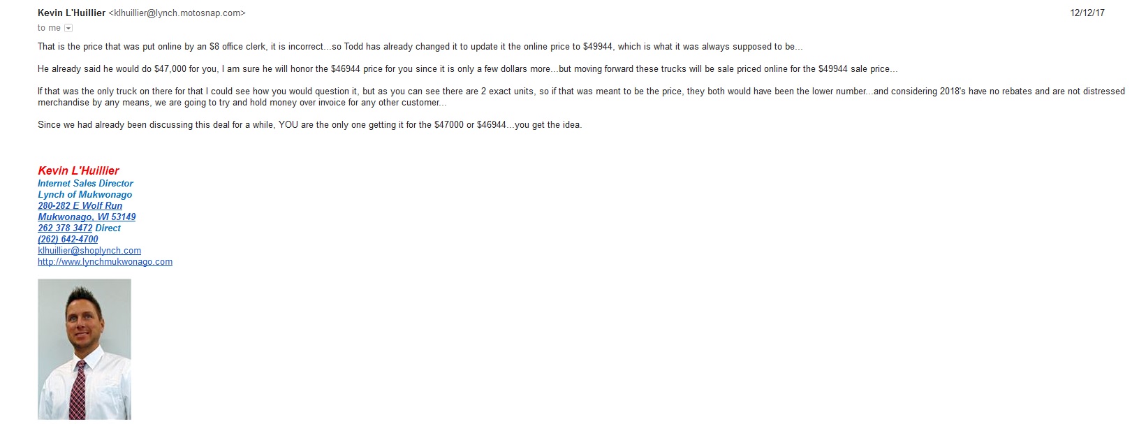 On Dec. 12th, 2017 I contacted Lynch Mukwonago Jeep about a Jeep they had listed on their website.